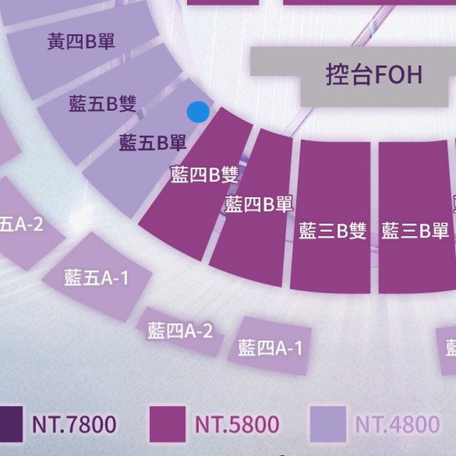 位置:藍五B單號區14排(應為該區第二排,近5800區走道位)