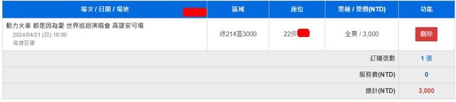標題[售票] 【售】動力火車週日場綠214單張