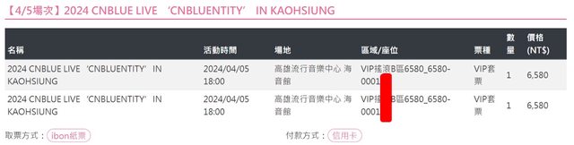位置:搖滾VIP B區序號1xx