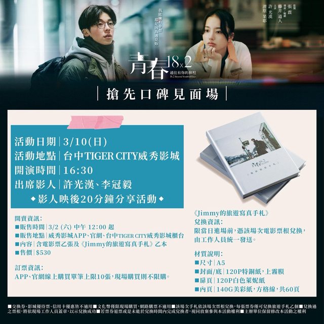 標題[售票] 3/10 青春18x2通往有你的旅程影人場