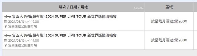 標題[售票] 告五人3/16漫遊區兩張