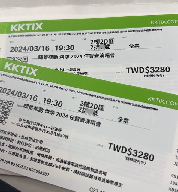 標題[售票] 任賢齊 齊跡 3/16 $3280售$3000