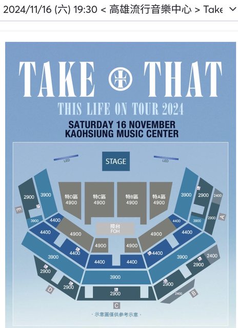 標題[售票] Take That 2024/11/16高雄 $4400一張
