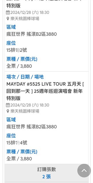 標題[售票] 五月天 12/28 3880元*2