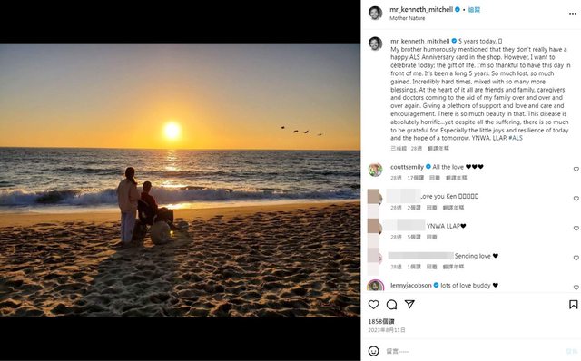 ▲肯內特米歇爾患漸凍人症5年時曾發文。(圖/翻攝自IG)