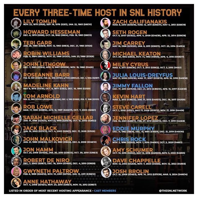 ③葛斯林是SNL第32位主持次數「剛好」3位的藝人,最近5年達成者包括(*表示亦為