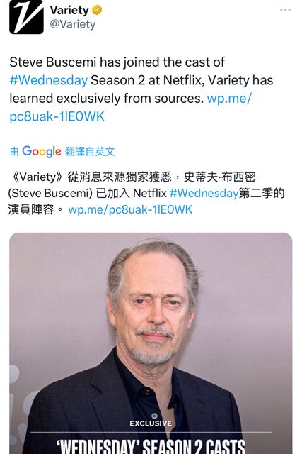標題[閒聊] Steve Buscemi 加入 Wednesday S2