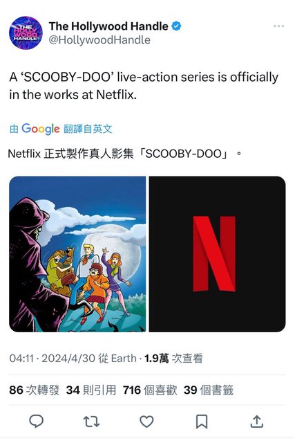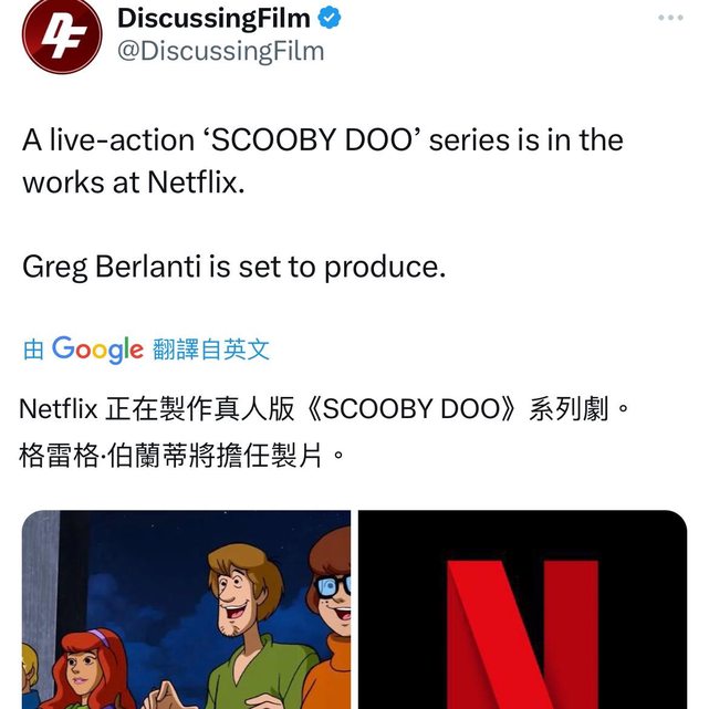 #ScoobyDoo Netflix 正在製作真人影集