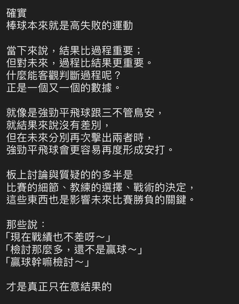 → Sfltnarud: 還是硬要扯一下 #不刻意追求長打 #有推進比較重要 05/18 22:16