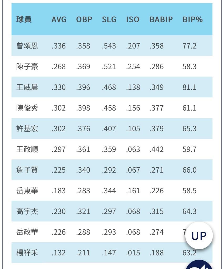 → Sfltnarud: 抱歉 不是BABIP是ISO 05/19 23:41