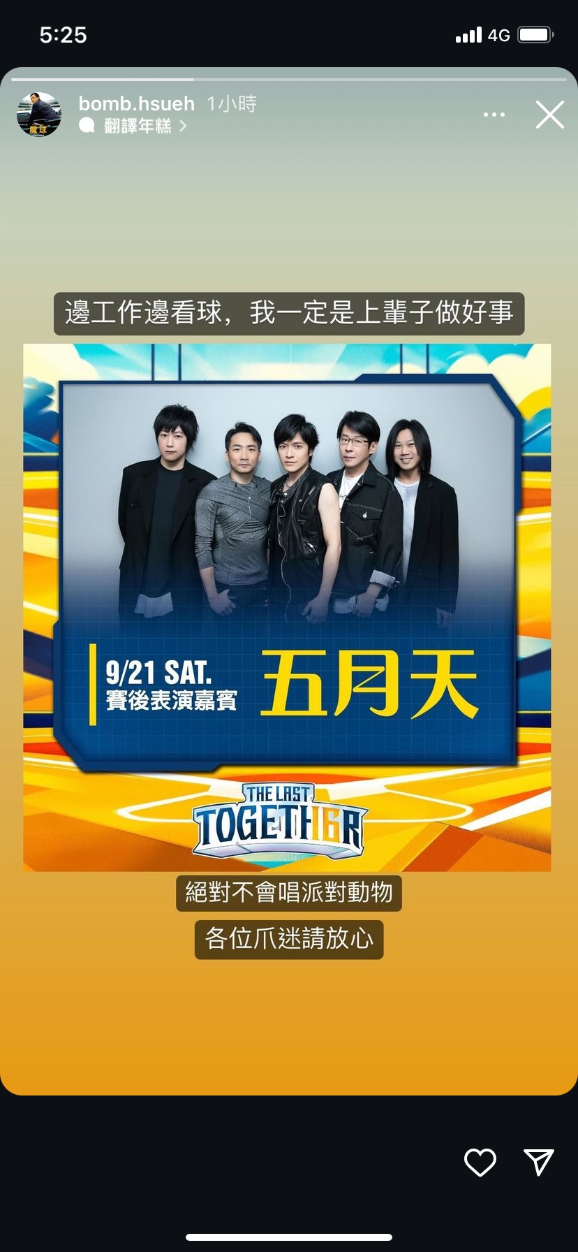 推 jack2324: 真的想不到會是五月天,真核彈級了XDDDDD 09/13 15:19