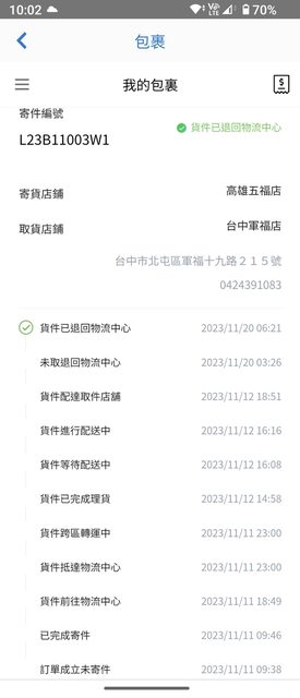 11/14 18:16:32 因收到系統尚未取貨通知,故提醒wLiSoN在時間內取貨