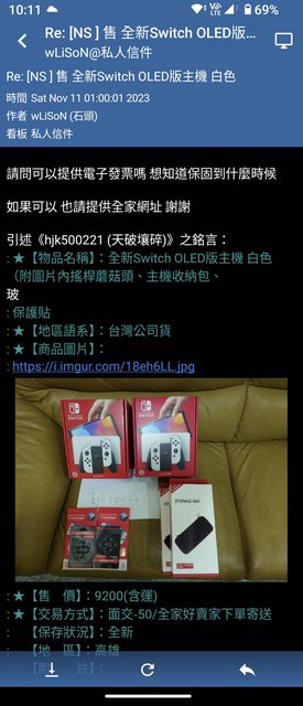 11/11 00:45:55 我於板上販售Switch