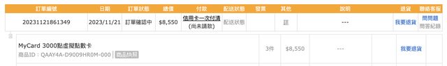 ★【物品名稱】:Mycard 點數卡(3000點x3)