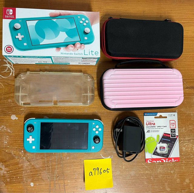1. switch lite 藍綠色+256gb sandisk記憶卡+透明保護套+兩個攜帶包