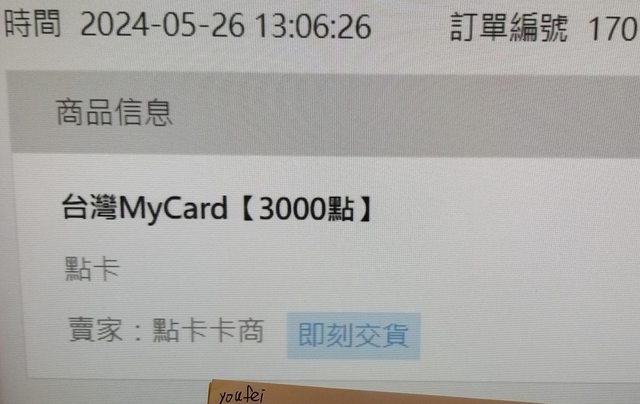 標題[PC] 售 Mycard 3000點 88折