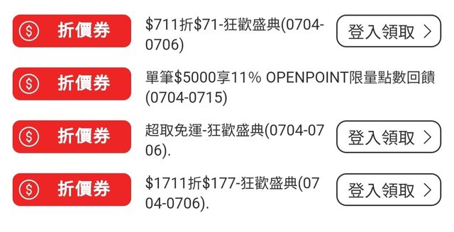 現正活動有免運、711-71、1711-177