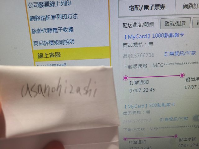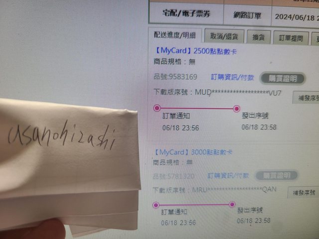 標題[PC ] 售 MYCARD 89折 3000點 2500點 1000點