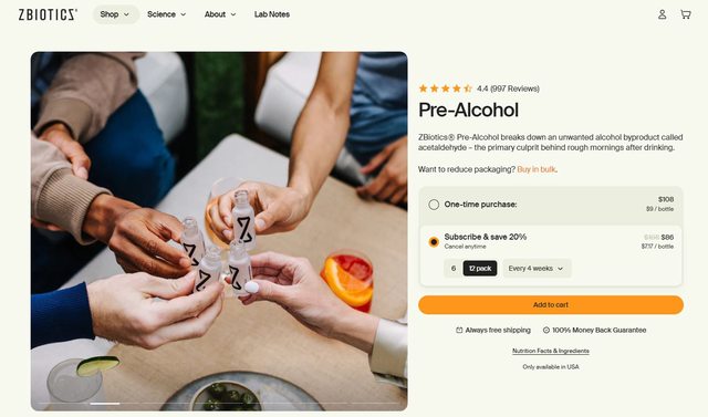 喝酒之前先喝小小一瓶ZBiotics 15ml
