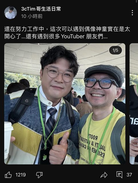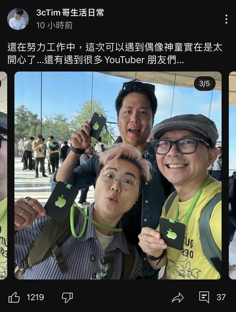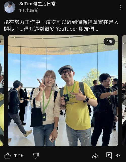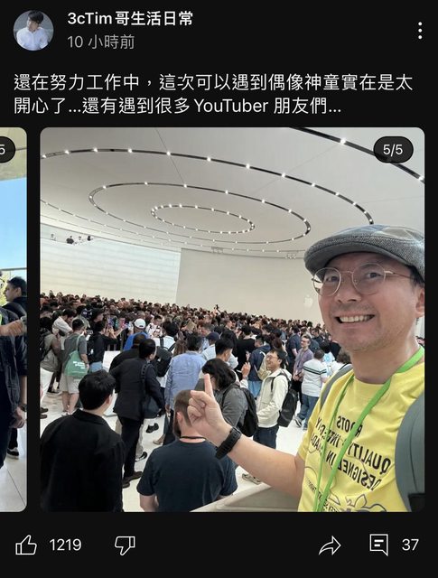 Tim哥受邀前往蘋果發表會現場,他也在YouTube頻道火速分享直擊影片,包括