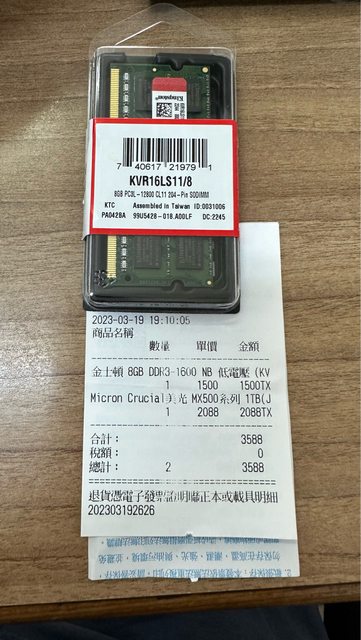 標題[賣/桃園/面交] 金士頓 8G DDR3-1600 NB