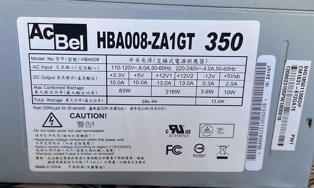 10.AcBel 康舒電源供應器 HBA005-ZA1GT 350W 100