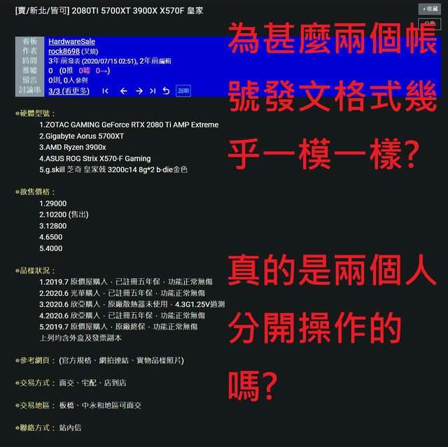 兩個帳號PO文所賣的零件都跟另一方完全沒有任何關係!?