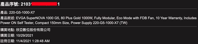標題[賣/新北/皆可] EVGA G5 1000W 80PLUS 金牌全模