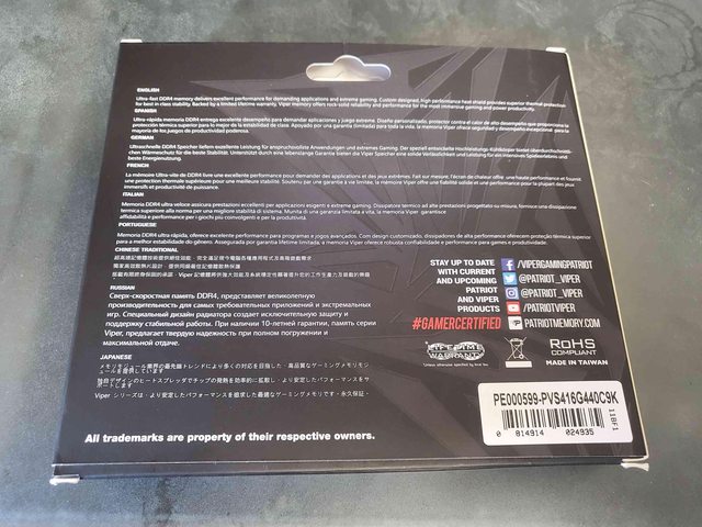 記憶體:Patriot DDR4 4400 16G(8Gx2)(三星B-die CL19-19-19-39)