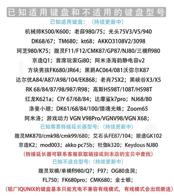 鍵盤適用範圍(請注意自己的產品適不適合使用)