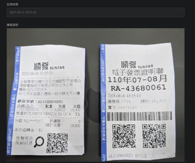 1.購買日期 :2021.08.04 光華順發購買
