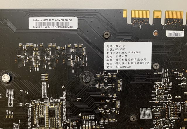 標題[賣/新竹/面交] MSI GTX 1070 ARMOR 8G OC