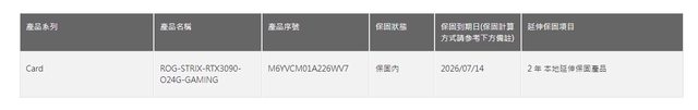 於2021/07/14購入,發票不見了,已延長保固至2026/07/14,保固已附圖, 完整盒裝配件都在,升級4090故售出,價格可小議。