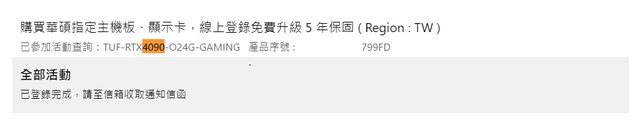 ◎硬體型號:華碩 ASUS TUF Gaming GeForce RTX™ 4090 OC