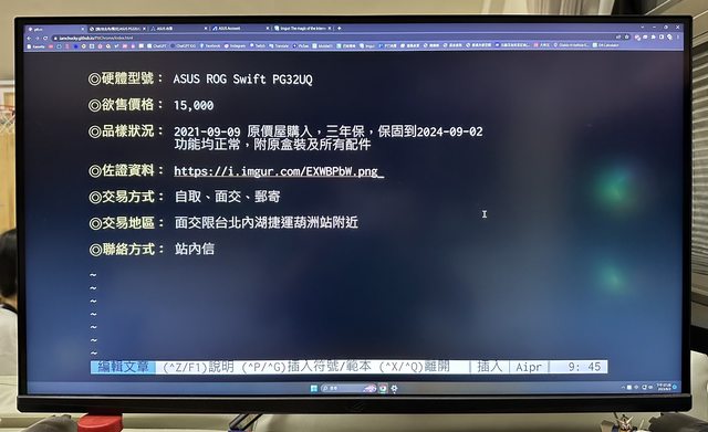 標題[賣/全國/皆可] ASUS PG32UQ 32吋4K144HZ螢幕