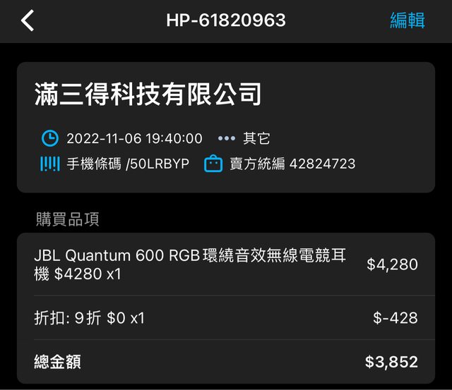 ◎硬體型號: JBL Quantum 600 電競耳機