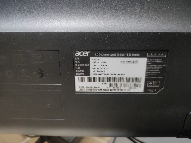 標題[賣/台南/面交] Acer S271HL 27吋LCD螢幕