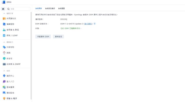 ◎硬體型號: Synology DS220j + 希捷 那嘶狼 2TB x2