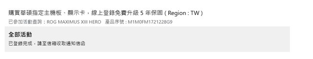 主機板保固 + 延長證明到 2026 年 3 月 30