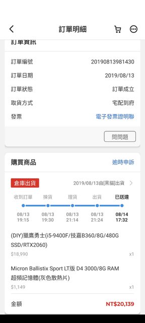 2019年8月購入套裝機之記憶體,不確定是否還有保固,功能正常
