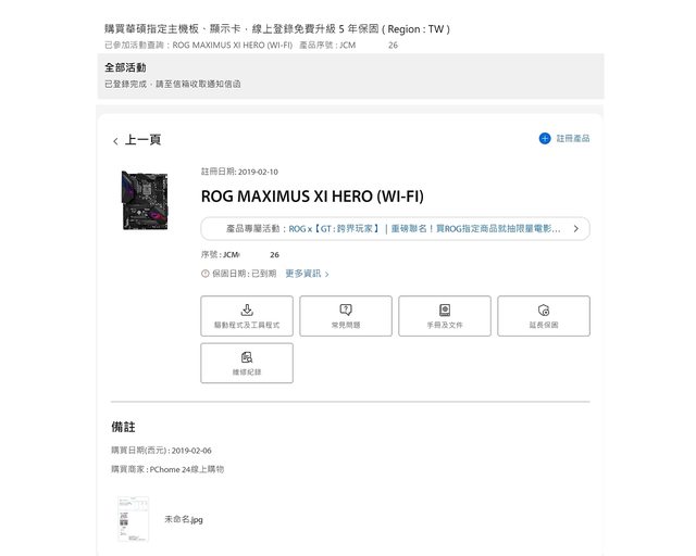 ※主機板: 2019/02/06購自PCHOME,有註冊延長保固(3+2共5年),保固至2024/02/06