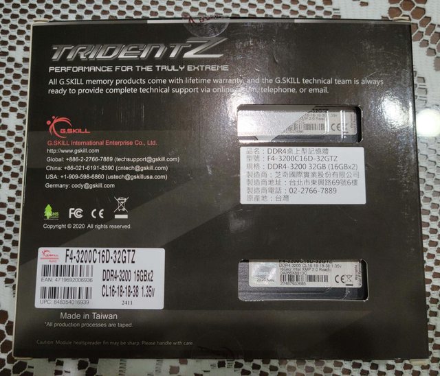 3. 記憶體:芝奇Trident Z DDR4 3200 - 32GB (2x16GB) F4-3200C16D-32GTZ