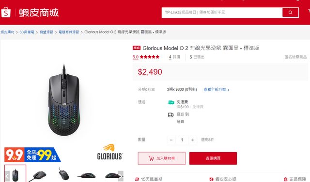 標題[賣/全台/皆可] Glorious Model O2 有線滑鼠2代