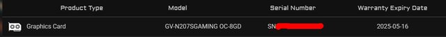 2020/05/16 購入,保固至 2025-05-16,發票存,盒子存,非礦卡,正常遊戲使用,