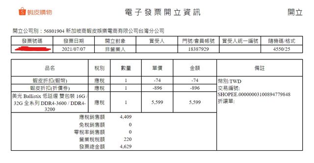 完成交易後會提供完整電子發票照片