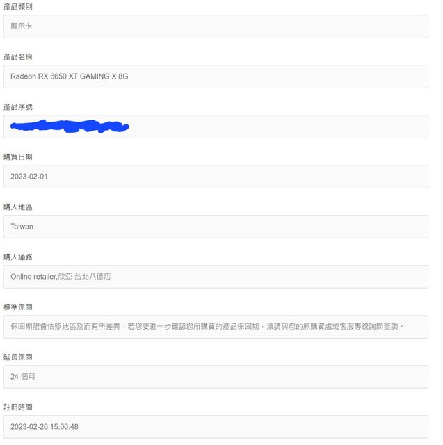 今年2月買,註冊5年保,已註冊