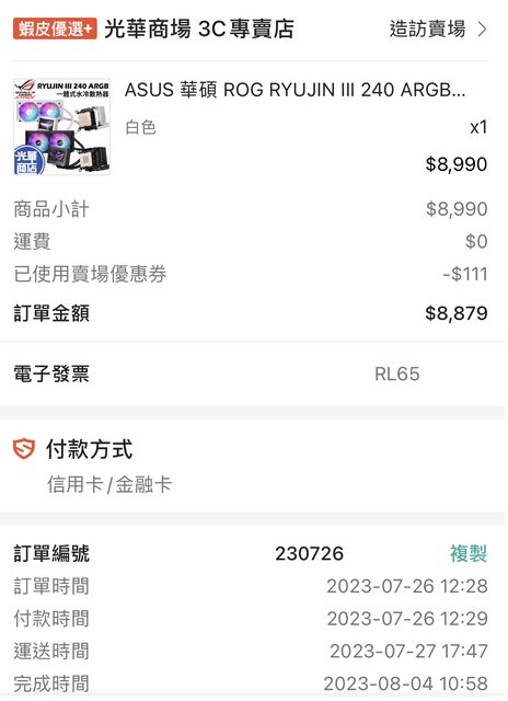 約是ASUS龍王級與NZXT Kraken系列以外等級(不用繳