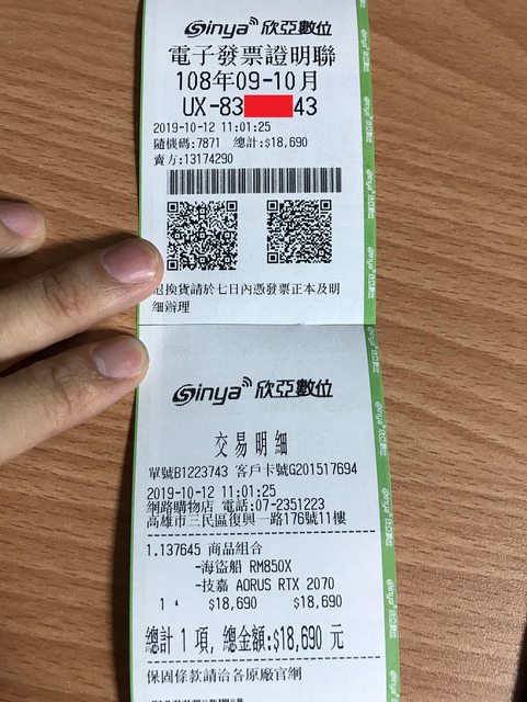 購買發票(已於送修時提供予代理商更新保固期限):