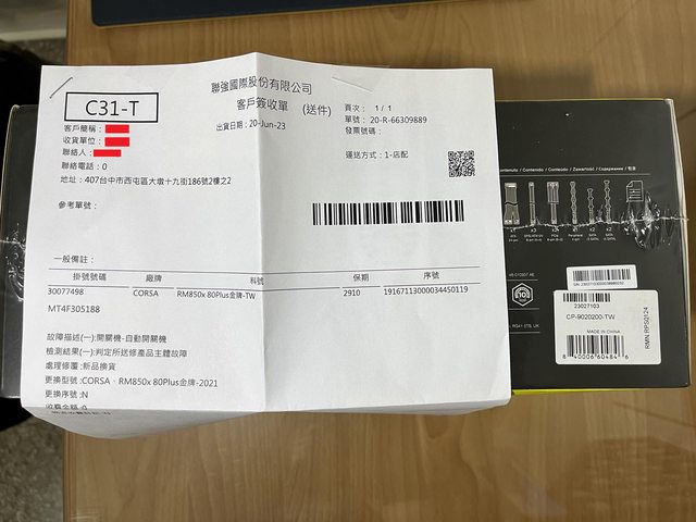 ◎硬體型號: 海盜船Corsair RM850X 2021(RMA未拆)