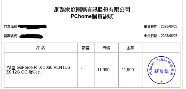 今年5/26從PCHome購入 打遊戲自用
